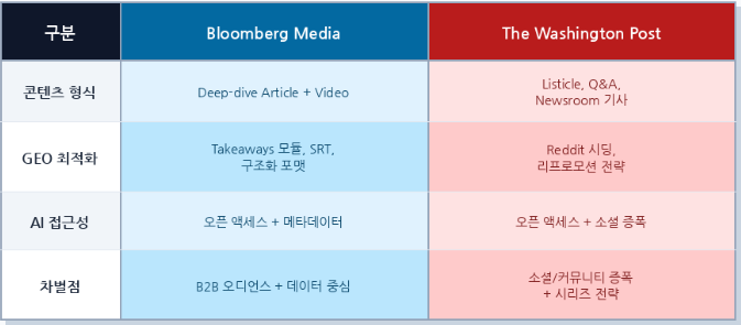 ✨ Bloomberg Media & The Washington Post의 GEO 한 눈에 비교하기 ✨ |